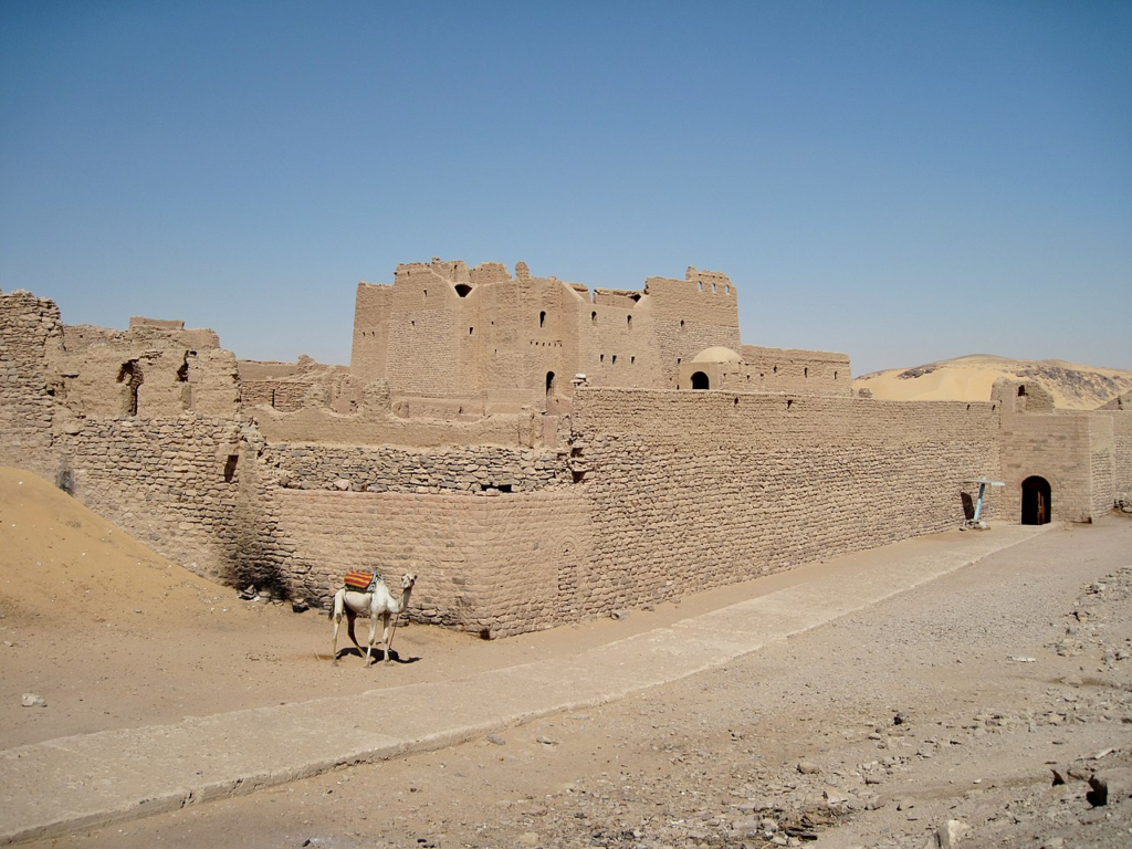 “Festungsartiges Viereck mit Thoren interessante Absismalerei [sic!]. Besonders gut in den Farben und im Decorativen. eine Felskapelle tief unten. In den Gängen des 2. Stockwerkes des Refectoriums ein weisser Geier in seinem Nest. Im langen Refectorium wie in den Zellen noch alle Gewölbe erhalten. 6-8 Betten in einer Zelle. Treppe bis ins 2. Stockwerk erhalten. Es soll das grösste aller erhaltenen ägypt. Klöster sein.”19
