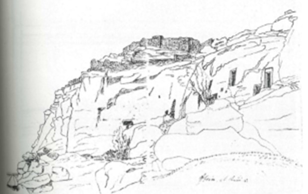 All in all, Richter studied 24 Nubian sites, complementing his entries with a series of sketches, depicting the course of the Nile, passing landmarks, and the antique structures located at the above mentioned sites.14 He also recorded a Greek Inscription (see fig. 5) found in a rock tomb at Derr which was built in Ptolemaic times and later reused by Christians.