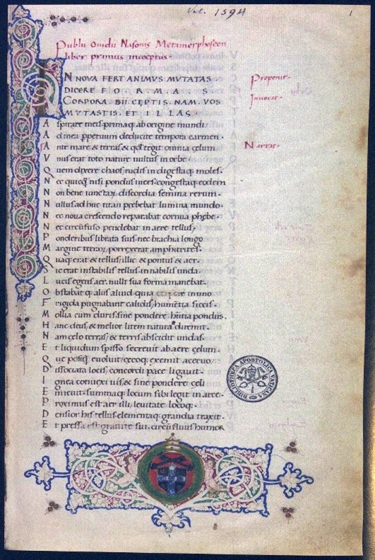 Ovid wrote many poems during his life but is probably best known for the Metamorphoses (see fig. 1), a mythological narrative poem consisting of 15 books which he finished writing around 8 CE.3