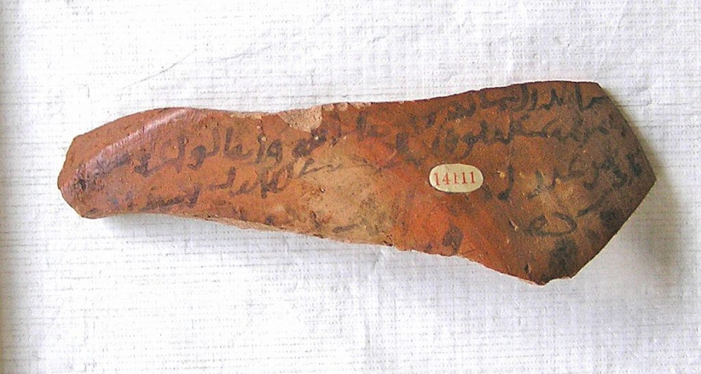 The database of the British Museum indicates that 1207 objects were donated by and further 6887 bought from Chester.14 There are 107 entries with an Aswan/Syene provenance, for the major part Coptic ostraca, Roman terracotta fragments, lamps and vessels all dating from the Graeco-Roman and Coptic periods.15 The ostraca were most likely bought at Elephantine including one ostracon (see fig. 1) acquired in 1876 with Arabic stemming from the time after the Arab conquest of Egypt in 639-642.16
