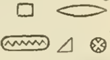 The columns of the Colonnades on the W. and N. sides of the cella exhibit genuine Ptolemaic capitals with a very high abacus. On the N. side (PI. f) is the peculiar but elegant capital, found only on Philae, consisting of a bunch of papyrus-buds, supporting the abacus on their tips. Screen-walls, more than half as high as the shafts, connect the columns. The most conspicuous columns are the seven on the side of the temple next the court. These have finely sculptured Ptolemaic capitals, surmounted by a cubical abacus with Hathor-masks and chapels. The Architrave above, adorned with the concave cornice and astragal, exhibits an unusually fine inscription, carved in the grand style, of which a duplicate occurs on the architrave of the E. colonnade opposite. This Dedication-Inscription records that Ptolemy IX. Euergetes II. Physkon (with numerous titles) and his wife Cleopatra, princess and mistress of both worlds, the Euergetae (divine benefactors), loved the life-giving Isis, the mistress of Abaton, the queen of the island of Philae (see fig. 11) and the mistress of the S. lands. The king and the queen, Philadelphi (see fig. 12) (divine brothers), Euergetae (see fig. 13), Philopatores, Epiphanes, Eupatores, and Philometores, erected and restored this beautiful monument, that it might be a festal hall for his (the king’s) mother Usert-Hathor, etc., and a scene of joyful excitement, Tekh (see fig. 14), for the mistress of Philae, that she might settle in it, etc. The above list of Ptolemaic surnames is especially important.29